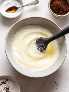 Step 5: Add 60g (1/2 cup) cocoa powder, 1/2 teaspoon vanilla, and a pinch of salt. Mix until smooth.