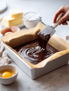 - Preheat your oven to 175°C (350°F). Line your baking pan with parchment paper, leaving some overhang for easy removal.