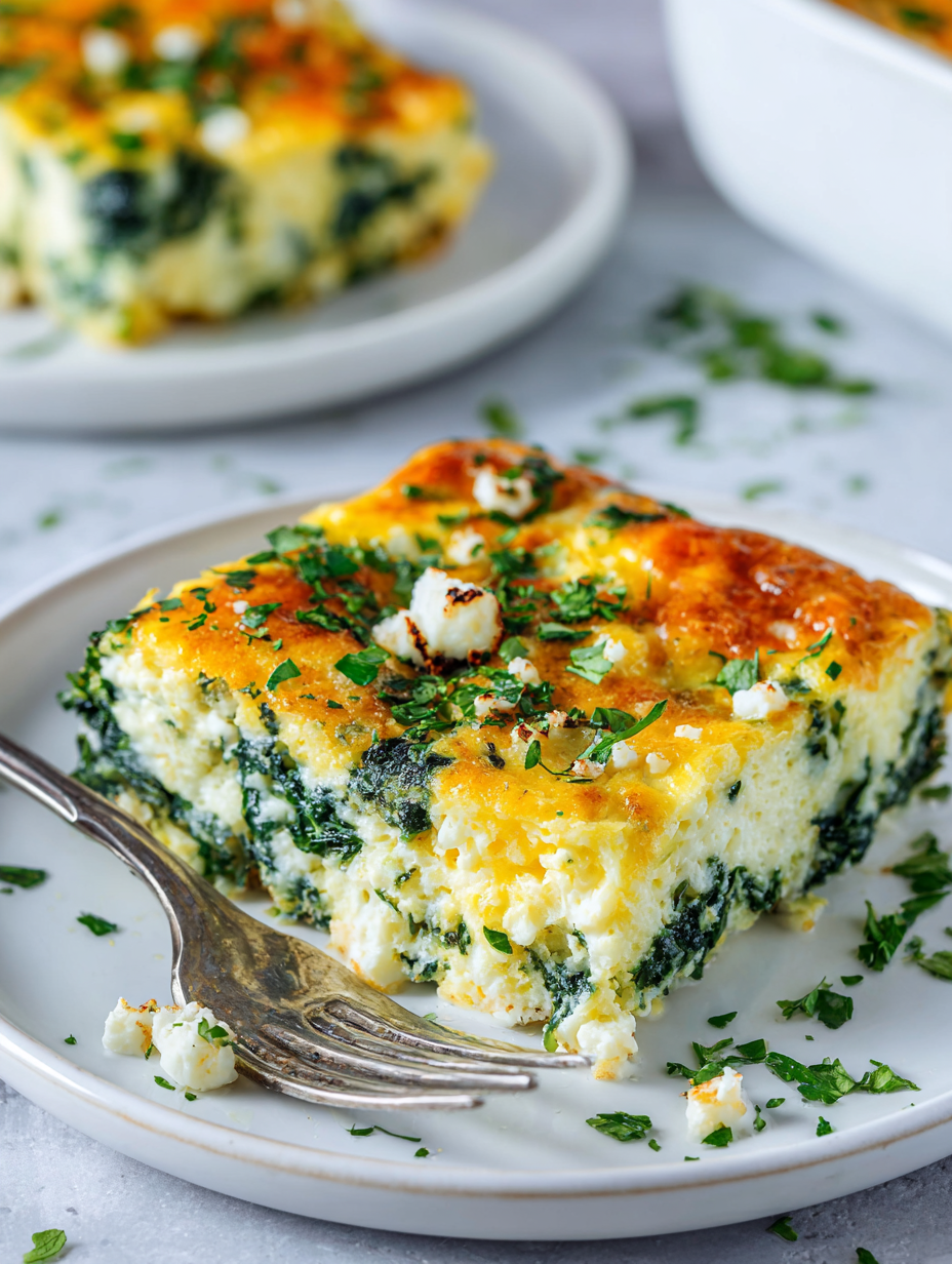 - Slice into squares or wedges and serve warm, enjoying the fluffy, cheesy, and spinach-filled goodness.