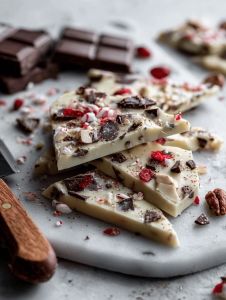 - Once the chocolate has fully hardened and is firm to the touch, break the bark into rustic, irregular pieces using your hands or a sharp knife.