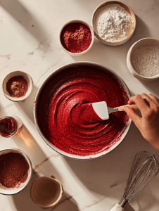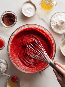 - Vinegar (white or apple cider): Enhances the red hue and reacts with baking soda for lift.
