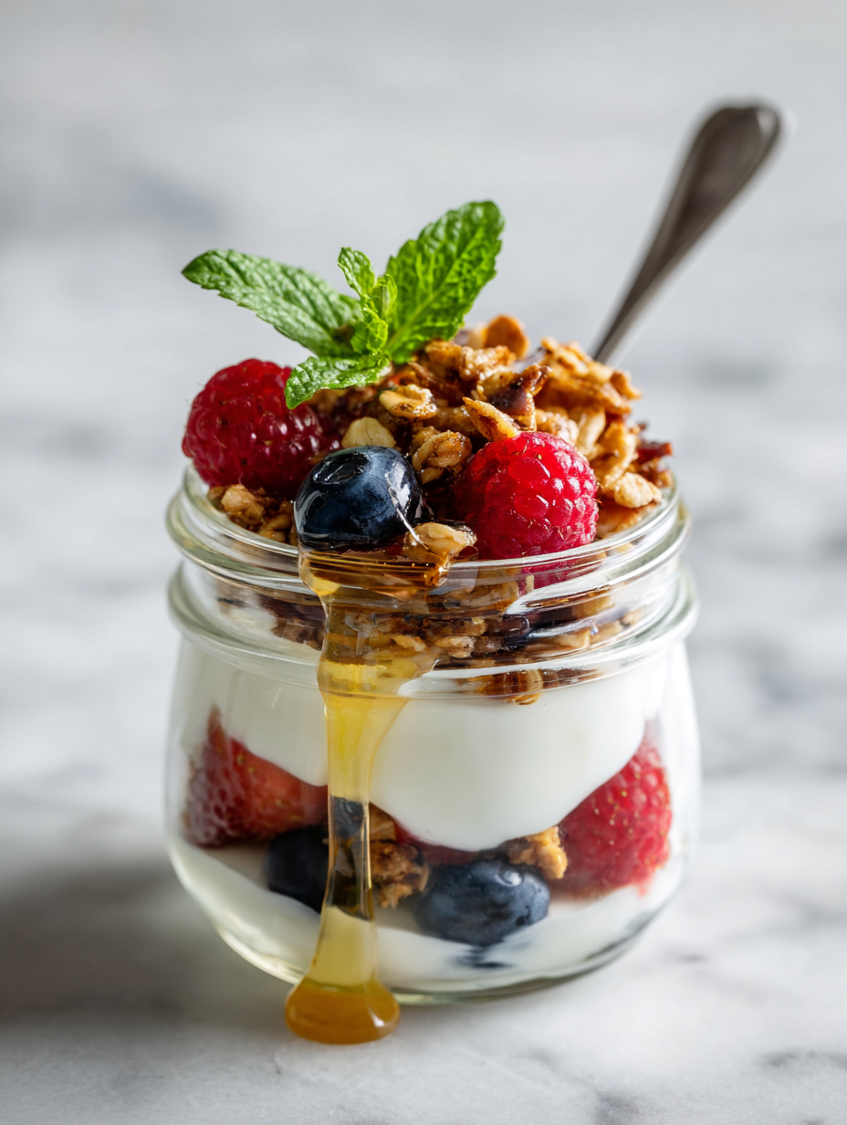 This recipe was born out of a lazy summer morning when I wanted something more satisfying than just yogurt and fruit. I started layering ingredients in a jam jar, inspired by childhood days of picnics and simple treats. Over time, I tweaked it to include crunchy granola and a drizzle of honey, making it a portable, no-fuss breakfast that still feels indulgent. It’s one of those dishes I come back to when I need a quick, nourishing boost that’s also a little nostalgic.