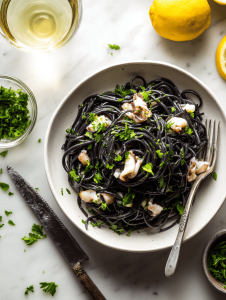 - Squid ink: Gives the pasta its bold, briny color and depth—think smoky ocean air. Swap for a splash of extra-virgin olive oil if you prefer a milder dish.