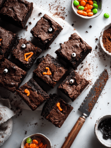 - Once decorated, serve your spooky brownies and enjoy the rich, fudgy texture combined with fun Halloween flair!