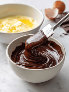 - Stir in the vanilla extract, then gently fold the melted chocolate mixture into the egg mixture until well combined and smooth.
