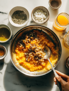 The slow, meditative process of stirring makes me pause and breathe. The comforting aroma of pumpkin and caramelized onion fills the kitchen, grounding me. It’s a dish that reminds me of crisp autumn evenings, family dinners, and the simple joy of good, honest food.