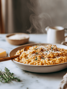 - Serve the pumpkin risotto hot, garnished with extra Parmesan or fresh herbs if desired, and enjoy the cozy, comforting flavors.