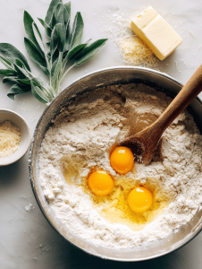 - Pasta dough: Made with flour and eggs, it’s tender yet sturdy enough to hold the filling.