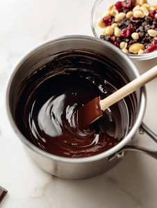Step 2: Melt dark chocolate in a heatproof bowl over simmering water, stirring until smooth.