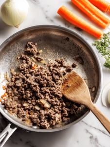 Step 4: Add ground beef or lentils (for vegetarian), cook until browned, about 8 minutes. Season with salt, pepper, and a dash of smoked paprika.